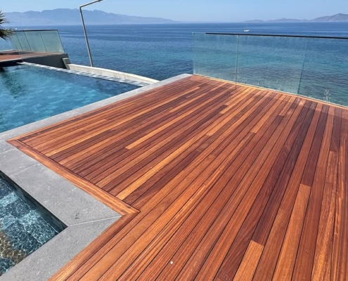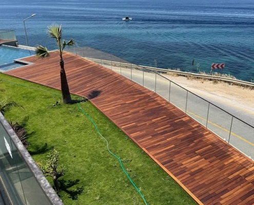 Bodrum Wood, dış mekânlarınızı sadece güzelleştirmekle kalmaz; onları doğayla bütünleştirir. Dayanıklılığı, estetiği ve tropikal dokusuyla öne çıkan Iroko deck uygulamaları, açık alanlarınızı lüks ve konforla buluşturur.